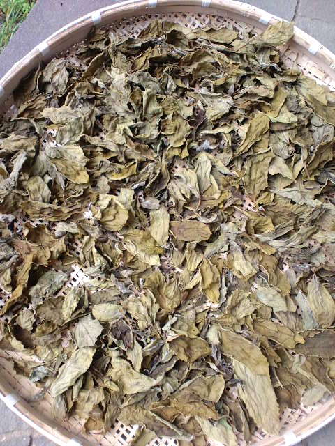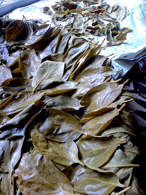 薬草茶といえば、昨日剪定して蒸しておいた柿葉を、母が