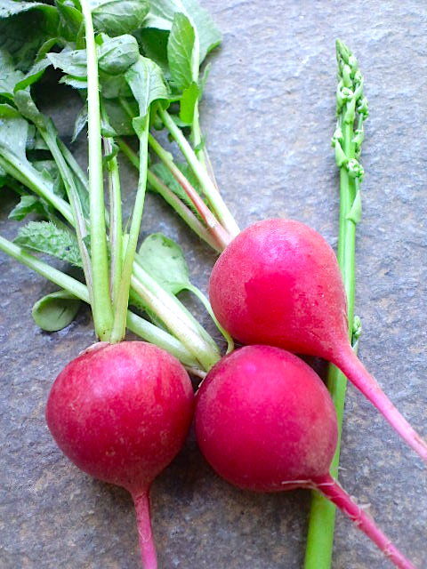 今朝の収穫はラディッシュ3粒