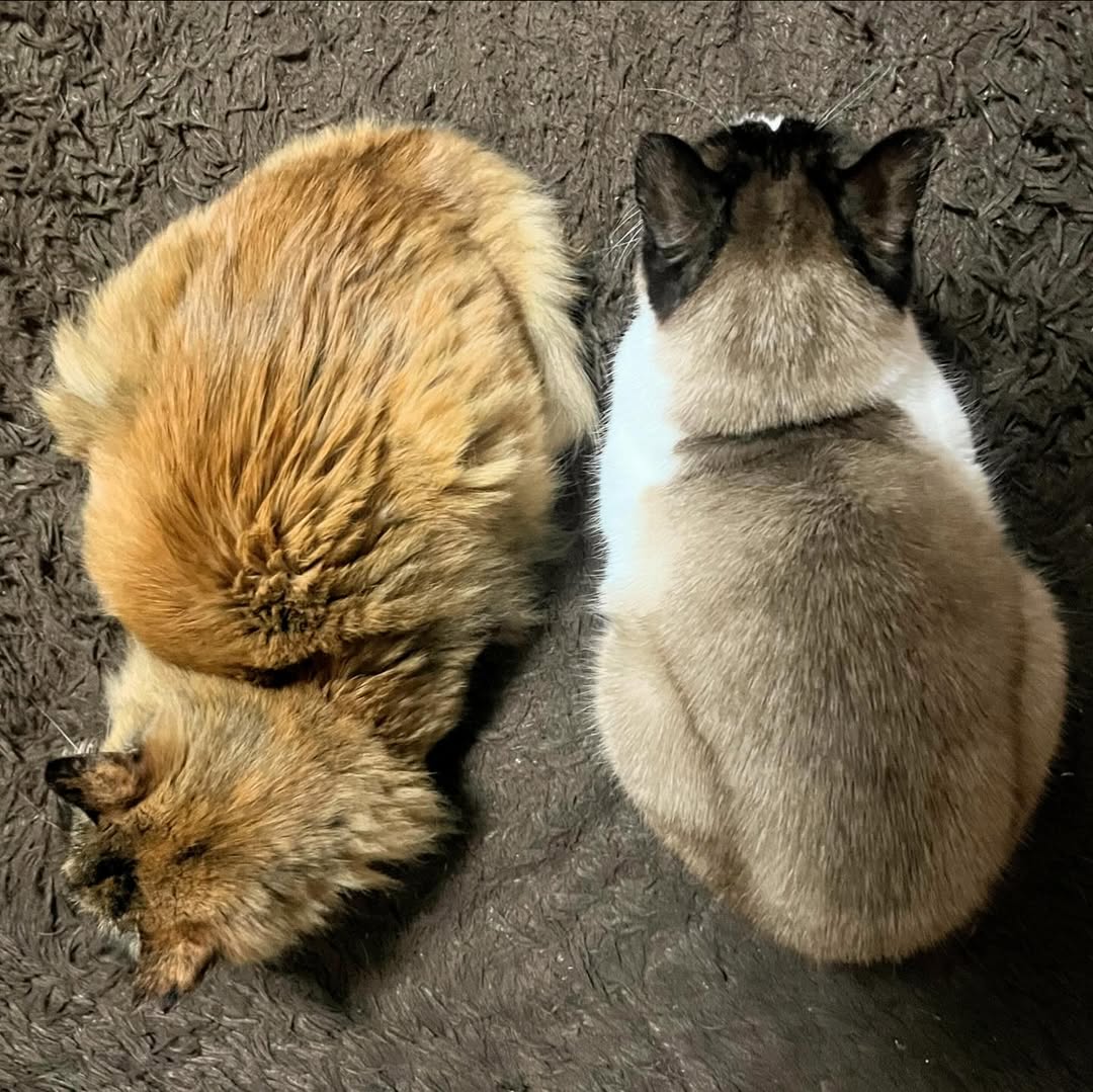 右脚はプリンが顎を乗せ、左脚はタヌソ姫が腕を乗せておる🐾